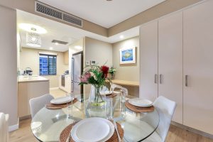 A very popular choice in our portfolio at the Waterfront. This 2 Bedroom 2 Bathroom stunning apartment with Lagoon Views and FREE CAR is perfect for the family of 4, two couples or corporate people looking to stay in style at the Waterfront. Sleeping 4 comfortably this apartment offers large kitchen, separate lounge with LCD TV, Dining for 4 persons, and an outdoor balcony to entertain from -perfect for overlooking the harbour, or watching those fantastic storms roll in!!